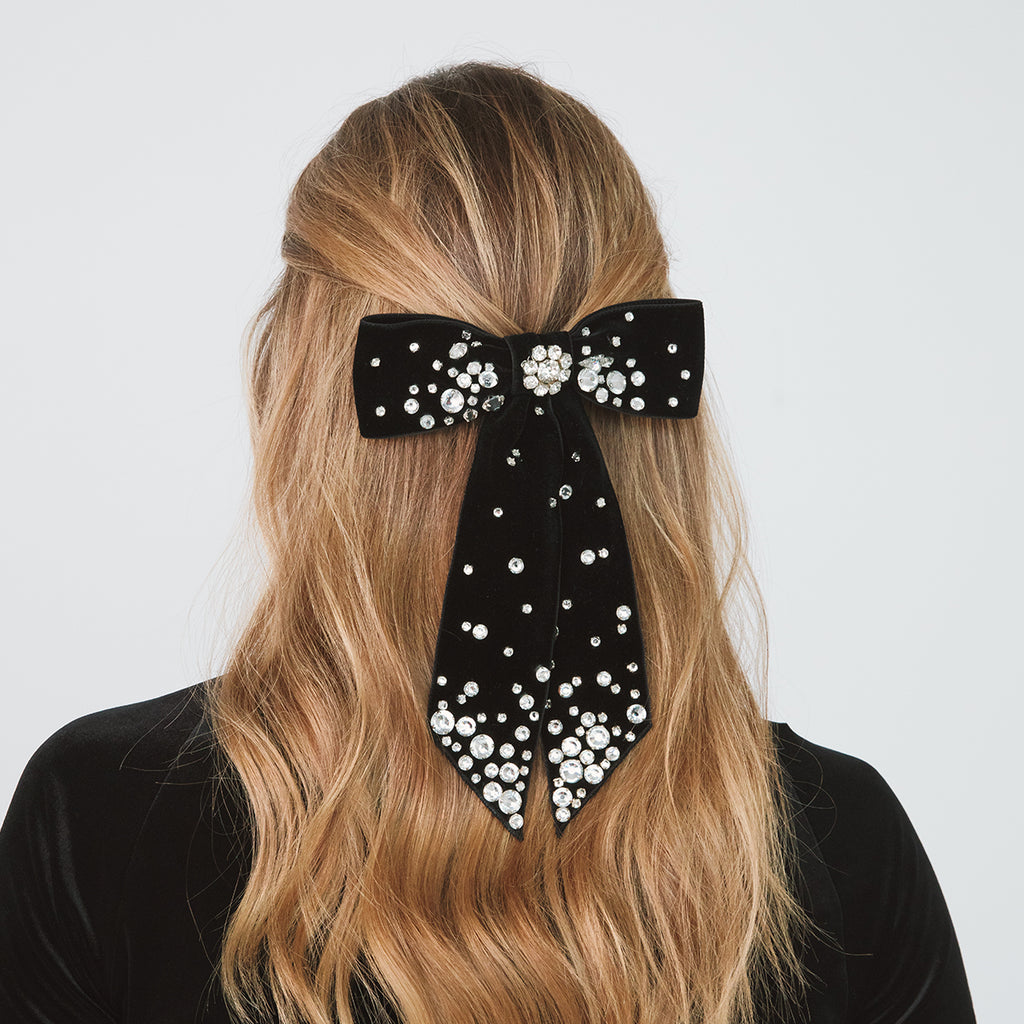 ベルベット 10cm ボウ バレッタ ウィズ リング