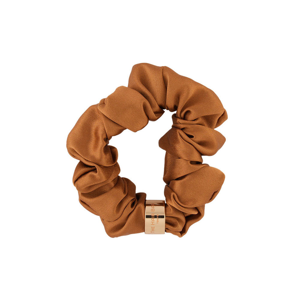 THE HAIR BAR TOKYOオリジナルのシルクスクランチー。光沢のあるシルク生地にTHBTのロゴが刻印されたゴールドリングがアクセントに。小ぶりなサイズ感はコーディネイトに取り入れやすく、デイリーにお使いいただけます。単品使いだけでなく、色違い2本でレイヤードを楽しんだり、バブルポニーのように2,3本を一緒に着けるのもおすすめです。