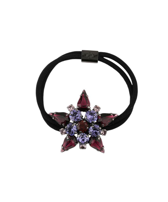 色とりどりのクリスタルガラスで星のきらめきを表現したコレットマルーフのポニーに2025 fallカラーが登場。エッジ感のあるフォルムを計算された配色のクリスタルガラスが引き立て、他にはない存在感を放ちます。ヘマタイトカラーの地金をベースに、落ち着いたトーンの組み合わせが秋冬のコーディネイトをシックに彩ります。ポニーテールやシニヨンなどのベーシックアレンジはもちろん、ブレスレット感覚で手首につけるのもおすすめ。ひと目で心を惹きつける印象的なデザインはご褒美やギフトにも最適です。