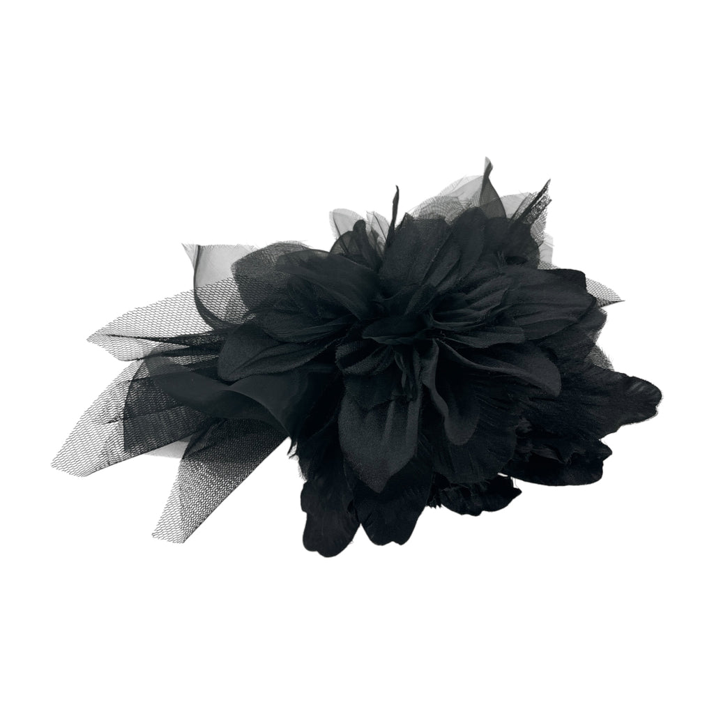 THE HAIR BAR TOKYOオリジナルのラグジュアリーなフラワーバレッタ。テクスチャーの異なる花びらを職人の手で幾重にも重ね、繊細かつ華やかに仕上げました。切りっぱなしのチュールの表情を生かし、あえてビジューを一切使用しない潔いデザインはコーディネイト次第でゴージャスにもシックにも展開できます。裏面にはバレッタ金具とブローチピンの両方を備え、ヘア/コサージュのどちらでもOK。ブライダルやステージ、パーティーなど、特別な日の装いを自分らしく、かつスタイリッシュに演出したい方におすすめです。