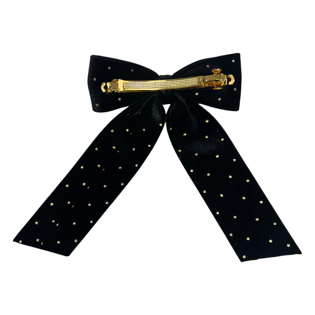 ベルベット ミディアム ボウ ウィズ ゴールド スタッズ 10cm バレッタ