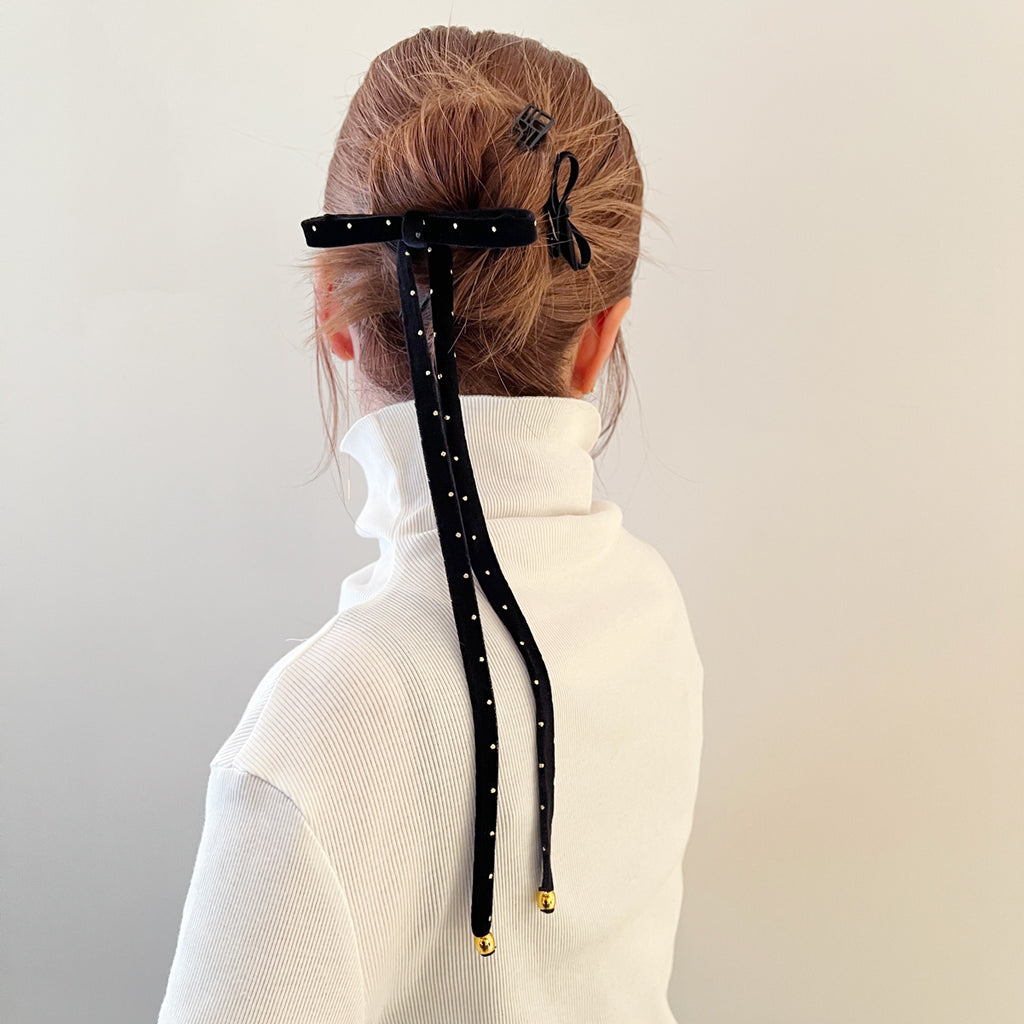 THE HAIR BAR TOKYOオリジナル、ゴールドのドットがアクセントになったロングボウバレッタ。