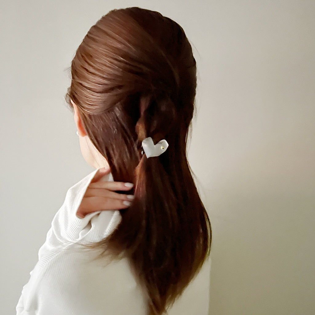 THE HAIR BAR TOKYOのアイコニックなハートポニーにフロスティング(マット加工)タイプが登場。これまでの光沢タイプとは全く異なる、すりガラスのような柔らかなニュアンスが特徴です。輝きを抑えたパウダリーなテクスチャーが大胆なファセットモチーフを引き立て、新鮮な存在感でスタイルを印象づけます。シンプルなポニーテールのほか、同シリーズのヘアピンやMサイズポニーとのレイヤードスタイルもおすすめ。ギフトにも最適です。