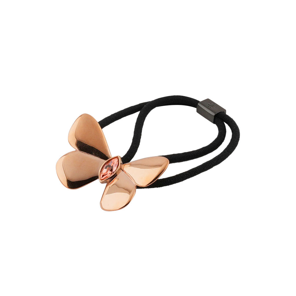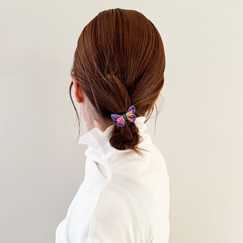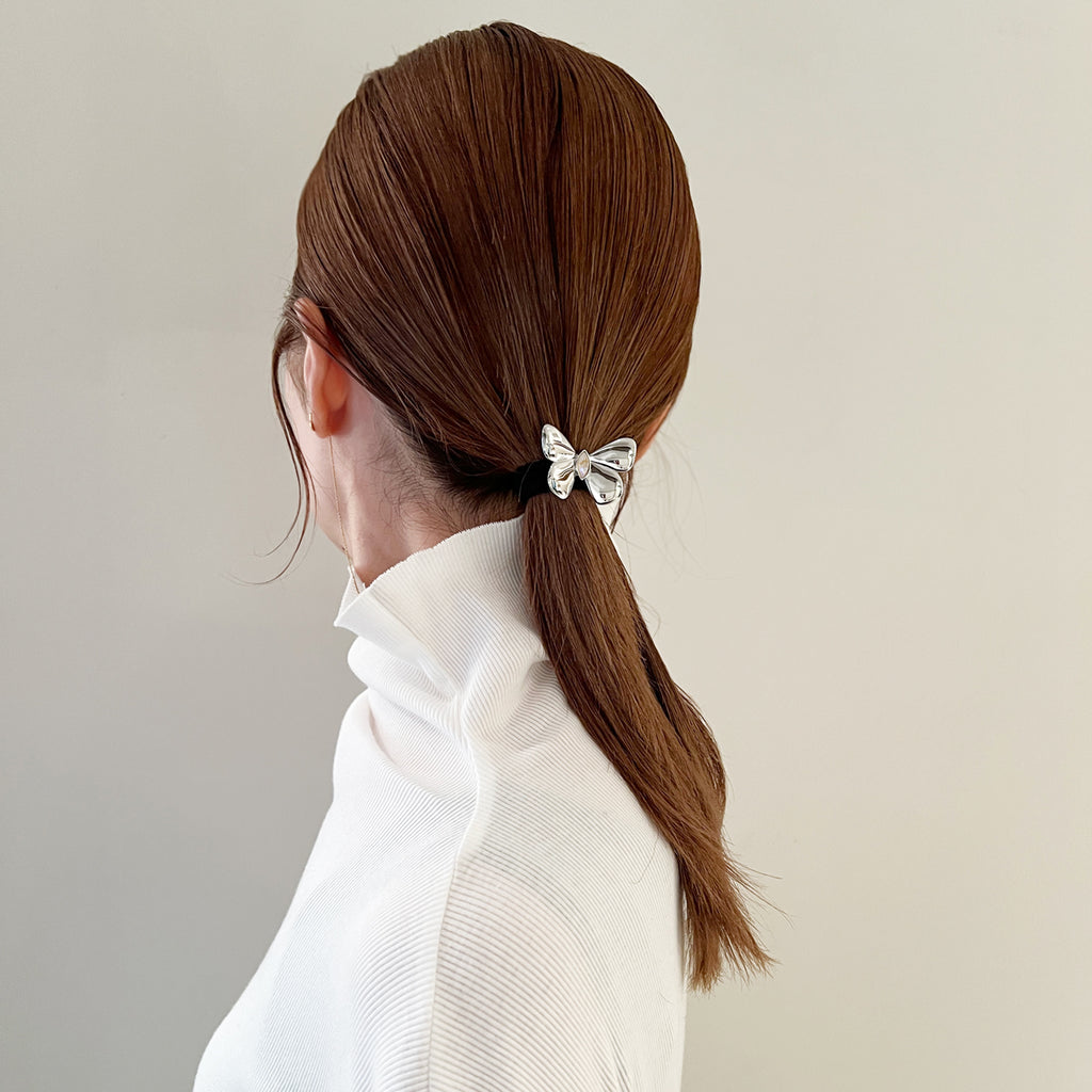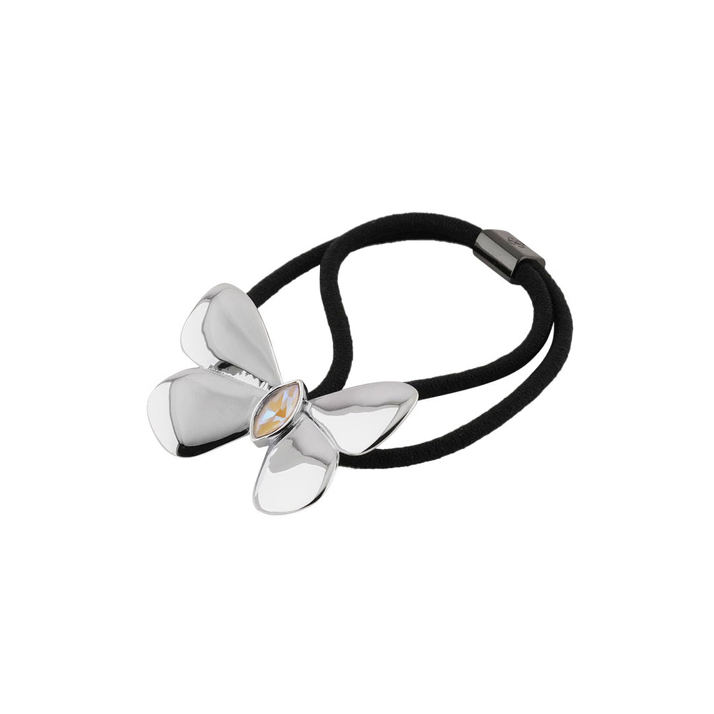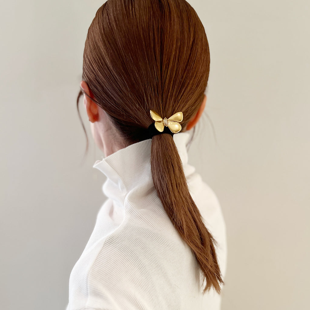ゴールド、シルバー、ローズゴールド、ブラック、オイルの5色展開で、センターに配置されたマーキスカットのクリスタルは、それぞれのメタルの色を最も引き立てるよう計算されています。羽根の表面はつややかに磨き上げられ、ジュエリーライクな光沢も魅力。シンプルなスタイルもこれ一つで格上げしてくれ、ギフトやご褒美にもおすすめ。カジュアルになりがちなポニーをアーティに洗練させた、大人のための上質アイテムです。