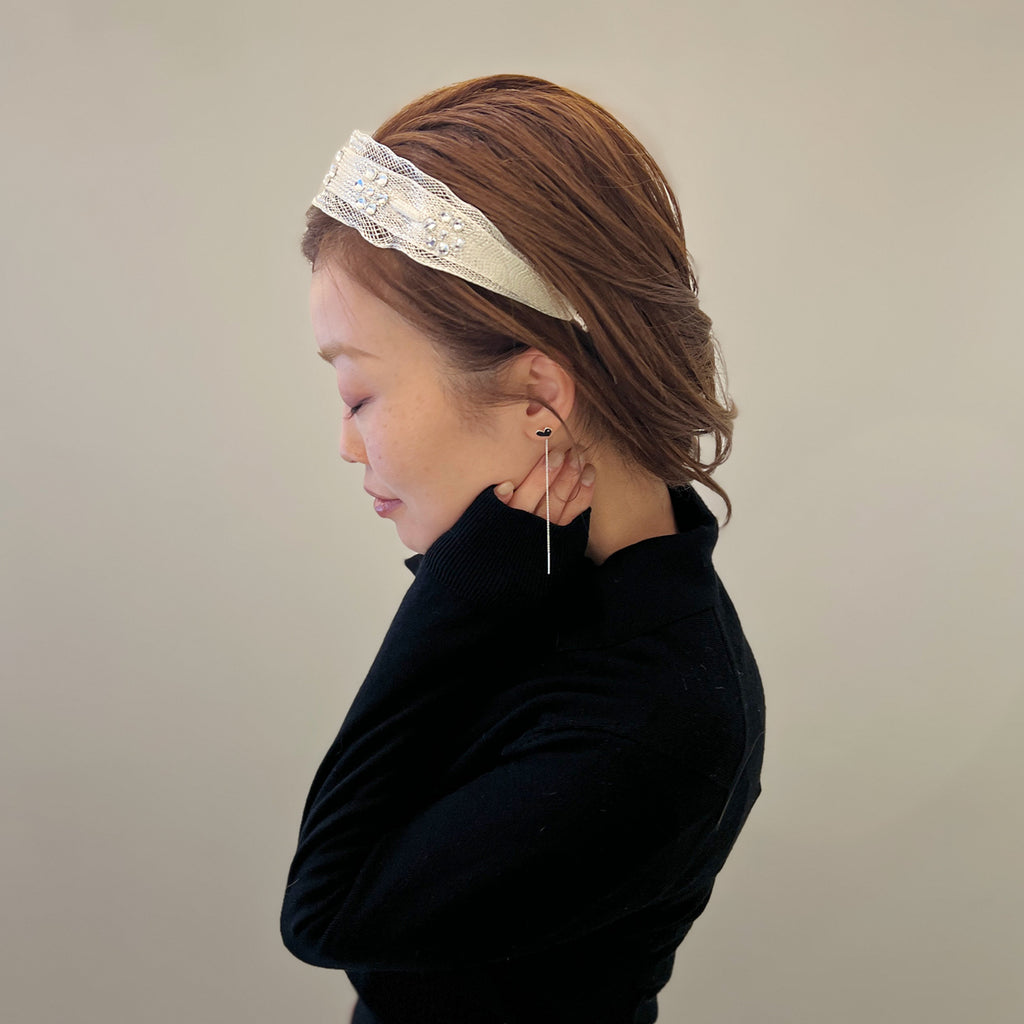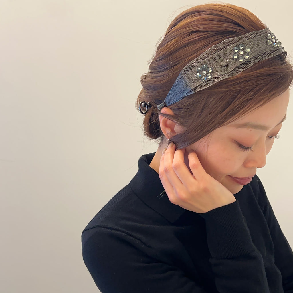 メッシュ シアー クリスタル フラワー ヘッドバンド