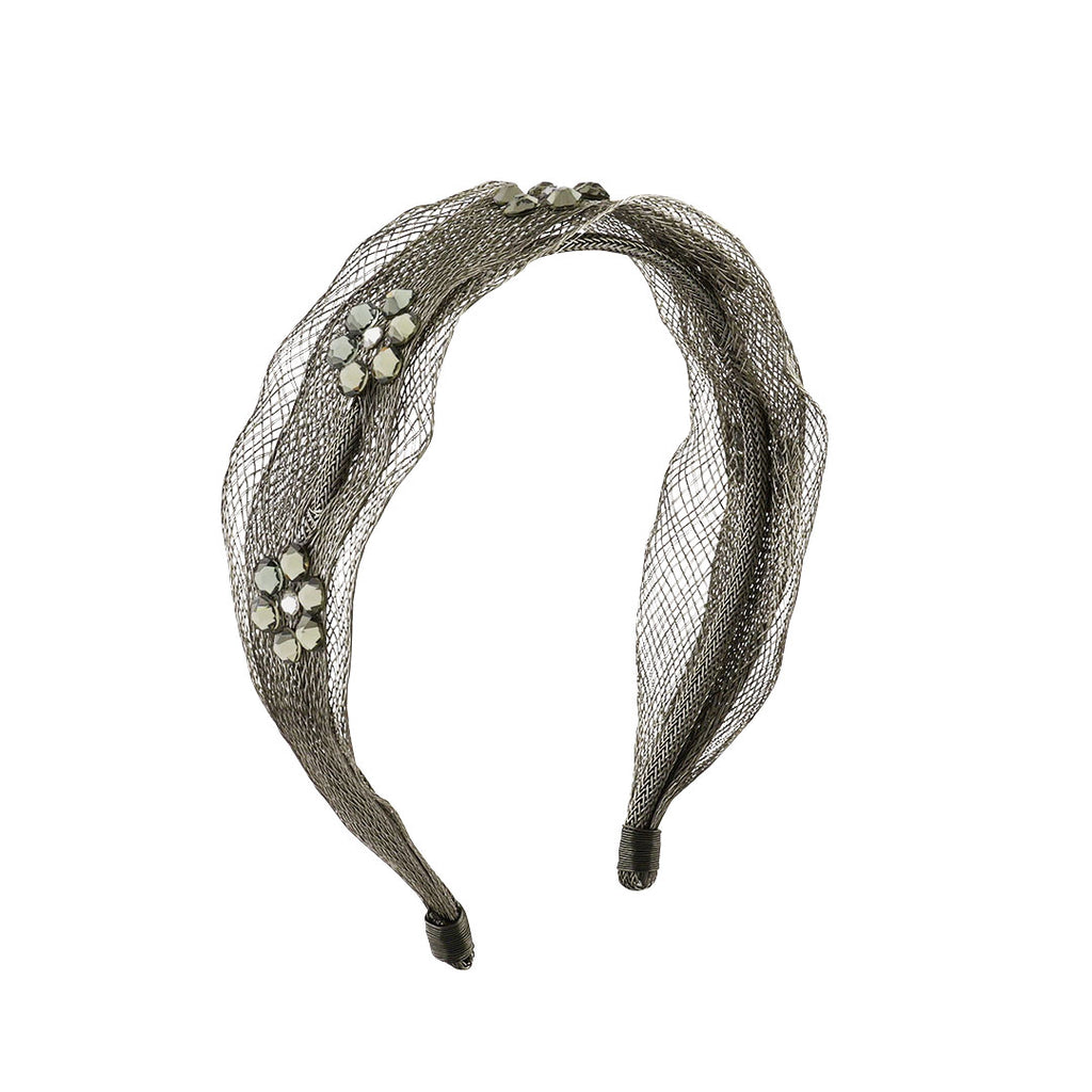 Mesh Sheer Crystal Flower Headband